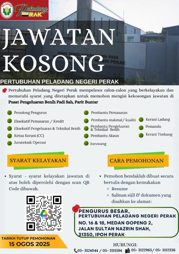 Iklan Kini Jawatan Kosong Pertubuhan Peladang Negeri Perak Like serta Ikut Facebook Kami, follow Chanel WhatsApp Jawatan Kosong & Telegram Portal SPA9 untuk capaian pantas kekosongan jawatan daripada kami sekarang. Klik Jawatan Disini