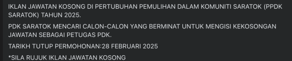 Iklan Kini Jawatan Kosong Pertubuhan Pemulihan Dalam Komuniti Klik Jawatan Disini Like serta Ikut Facebook Kami, follow Chanel WhatsApp Jawatan Kosong & Telegram Portal SPA9 untuk capaian pantas kekosongan jawatan daripada kami sekarang.