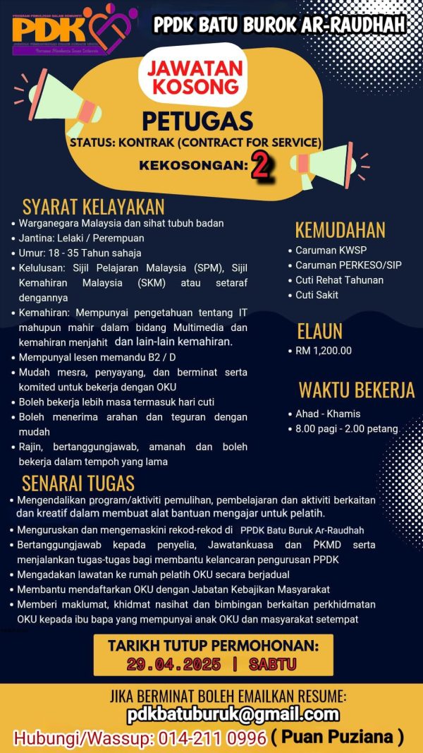 Iklan Kini Jawatan Kosong Pertubuhan Pemulihan Dalam Komuniti (PPDK) Klik Jawatan Disini Like serta Ikut Facebook Kami, follow Chanel WhatsApp Jawatan Kosong & Telegram Portal SPA9 untuk capaian pantas kekosongan jawatan daripada kami sekarang.