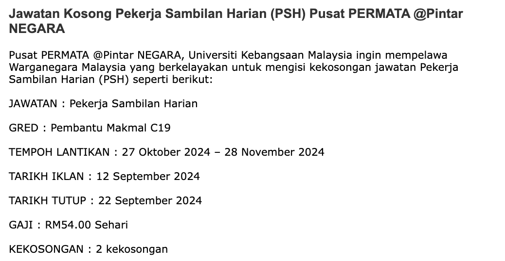 Iklan Kini Jawatan Kosong Pusat GENIUS@Pintar Negara UKM Like serta Ikut Facebook Kami, follow Chanel WhatsApp Jawatan Kosong & Telegram Portal SPA9 untuk capaian pantas kekosongan jawatan daripada kami sekarang. Klik Jawatan Disini