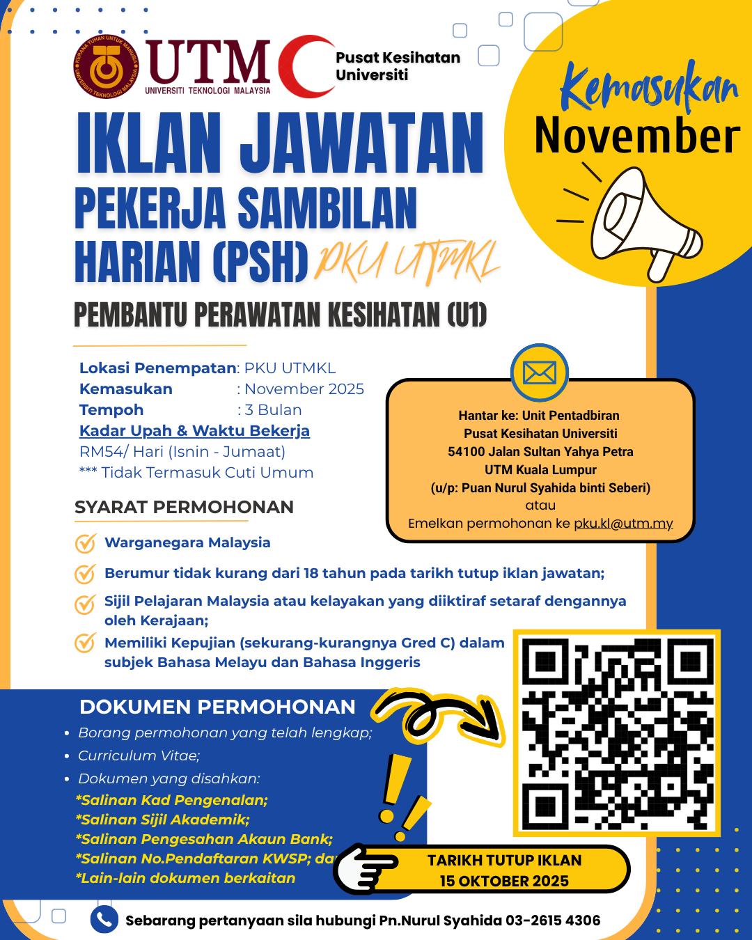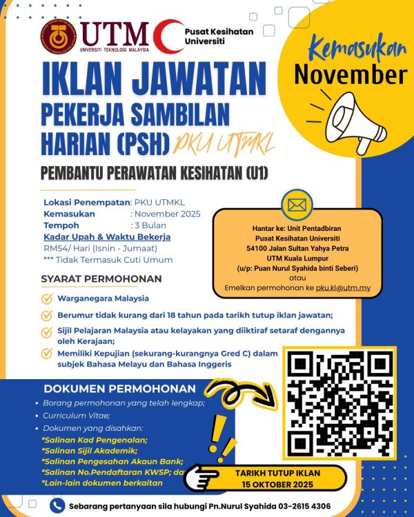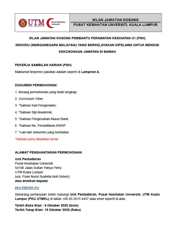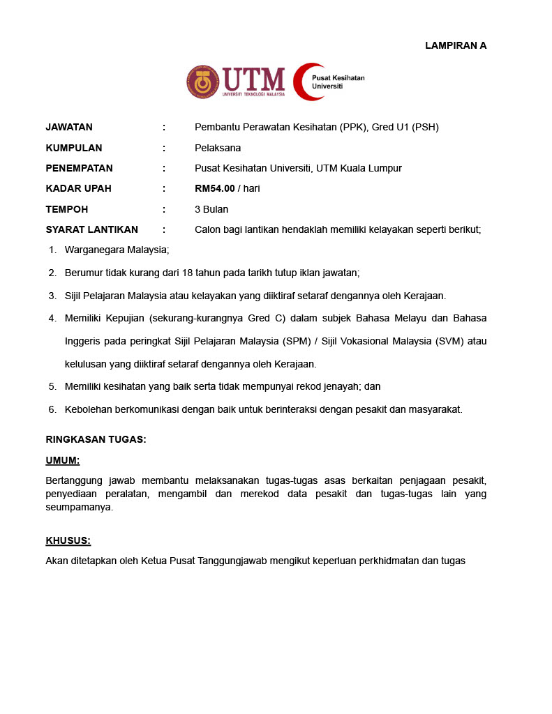 Iklan Kini Jawatan Kosong Pusat Kesihatan Universiti UTM Klik Iklan Jawatan Like serta Ikut Facebook Kami, follow Chanel WhatsApp Jawatan Kosong & Telegram Portal SPA9 untuk capaian pantas kekosongan jawatan daripada kami sekarang.
