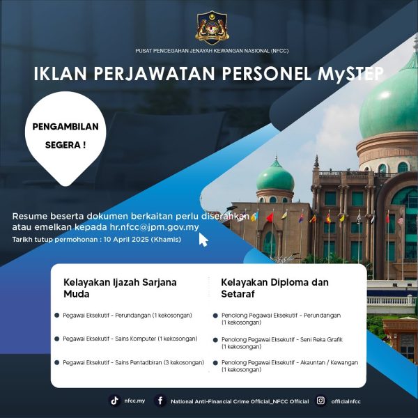 Iklan Kini Jawatan Kosong Pusat Pencegahan Jenayah Kewangan Nasional (NFCC) Klik Jawatan Disini Like serta Ikut Facebook Kami, follow Chanel WhatsApp Jawatan Kosong & Telegram Portal SPA9 untuk capaian pantas kekosongan jawatan daripada kami sekarang.