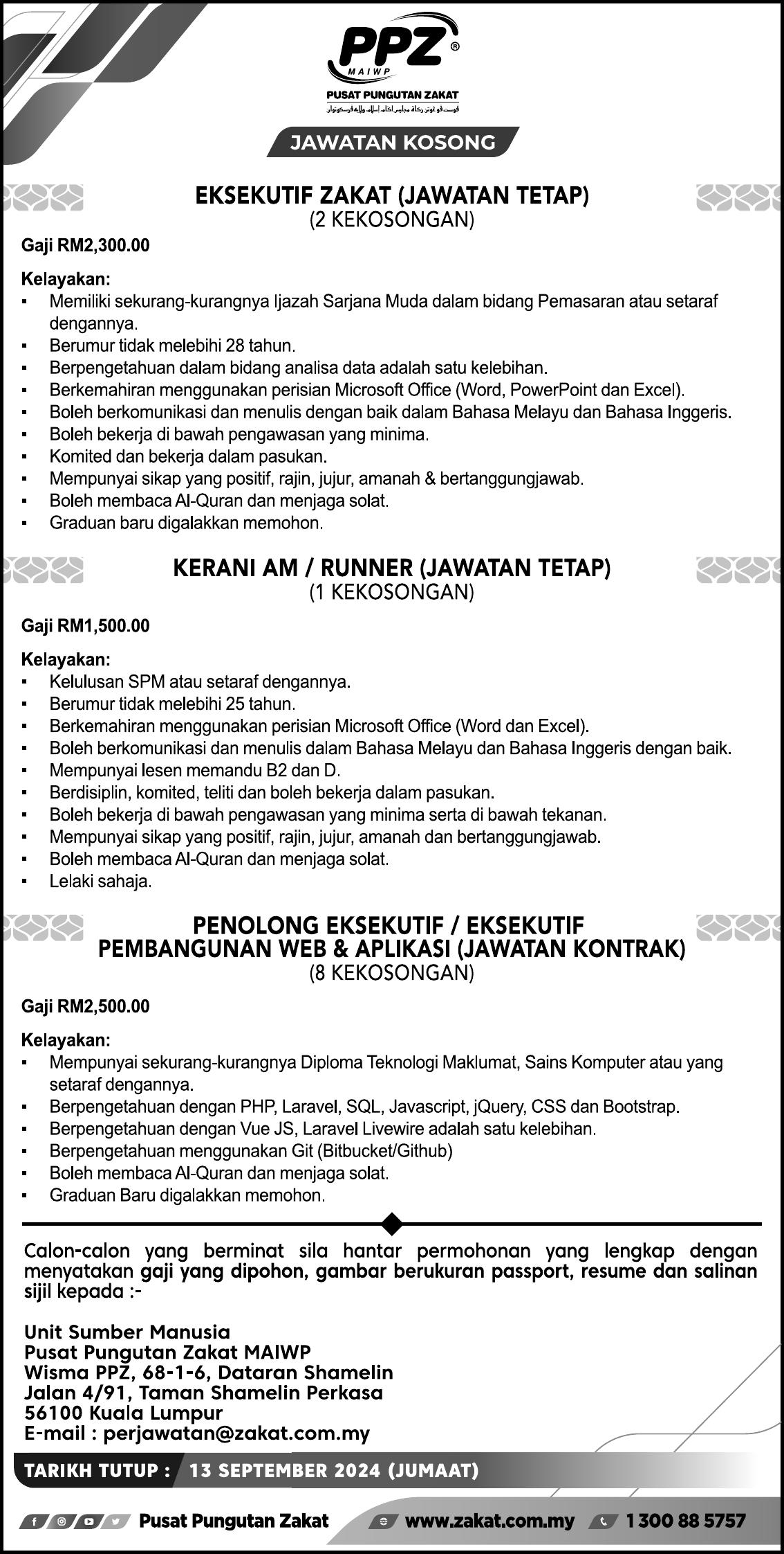 Iklan Kini Jawatan Kosong Pusat Pungutan Zakat PPZ (MAIWP) C-2606-PPZ-RA Like serta Ikut Facebook Kami, follow Chanel WhatsApp Jawatan Kosong & Telegram Portal SPA9 untuk capaian pantas kekosongan jawatan daripada kami sekarang.