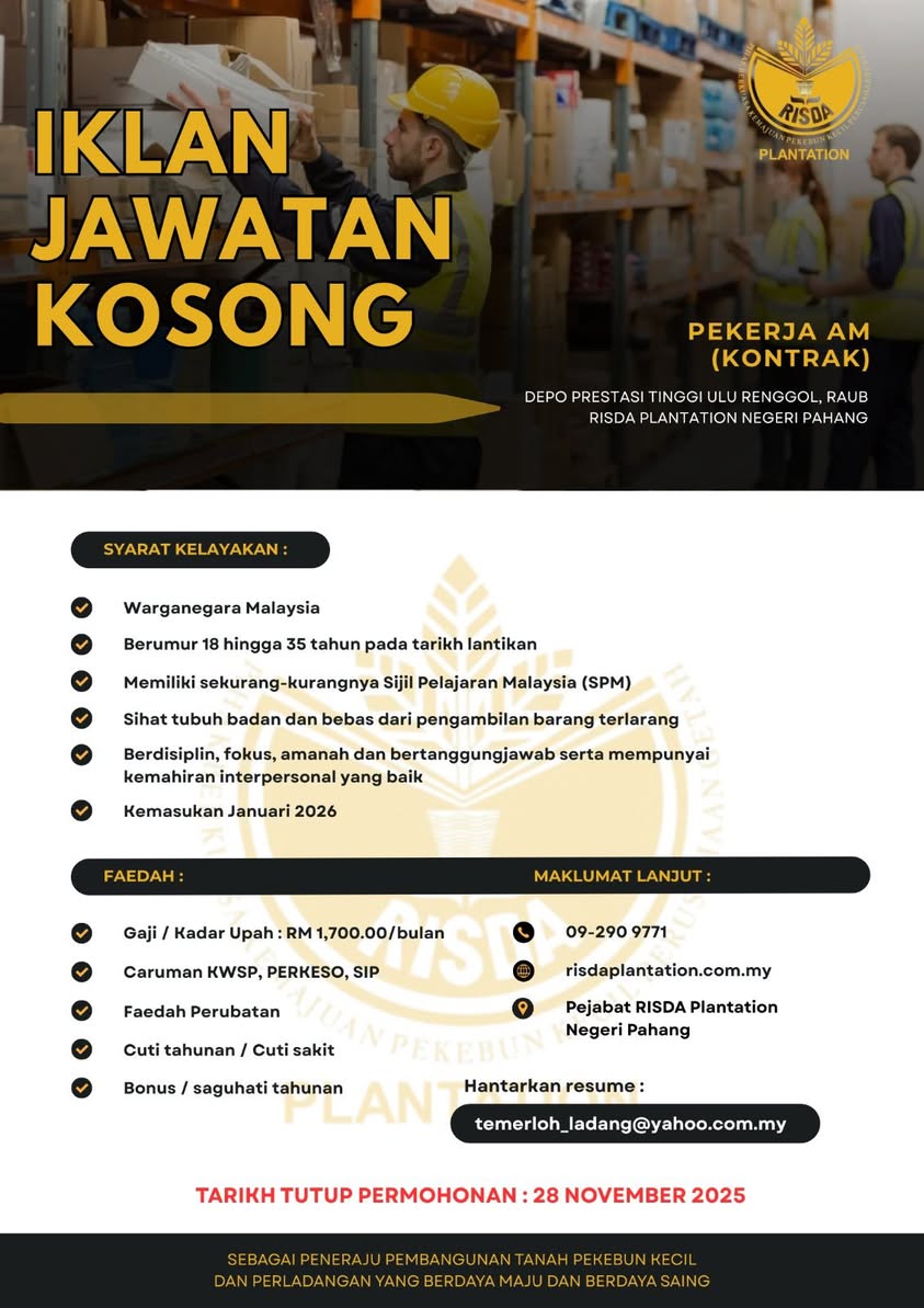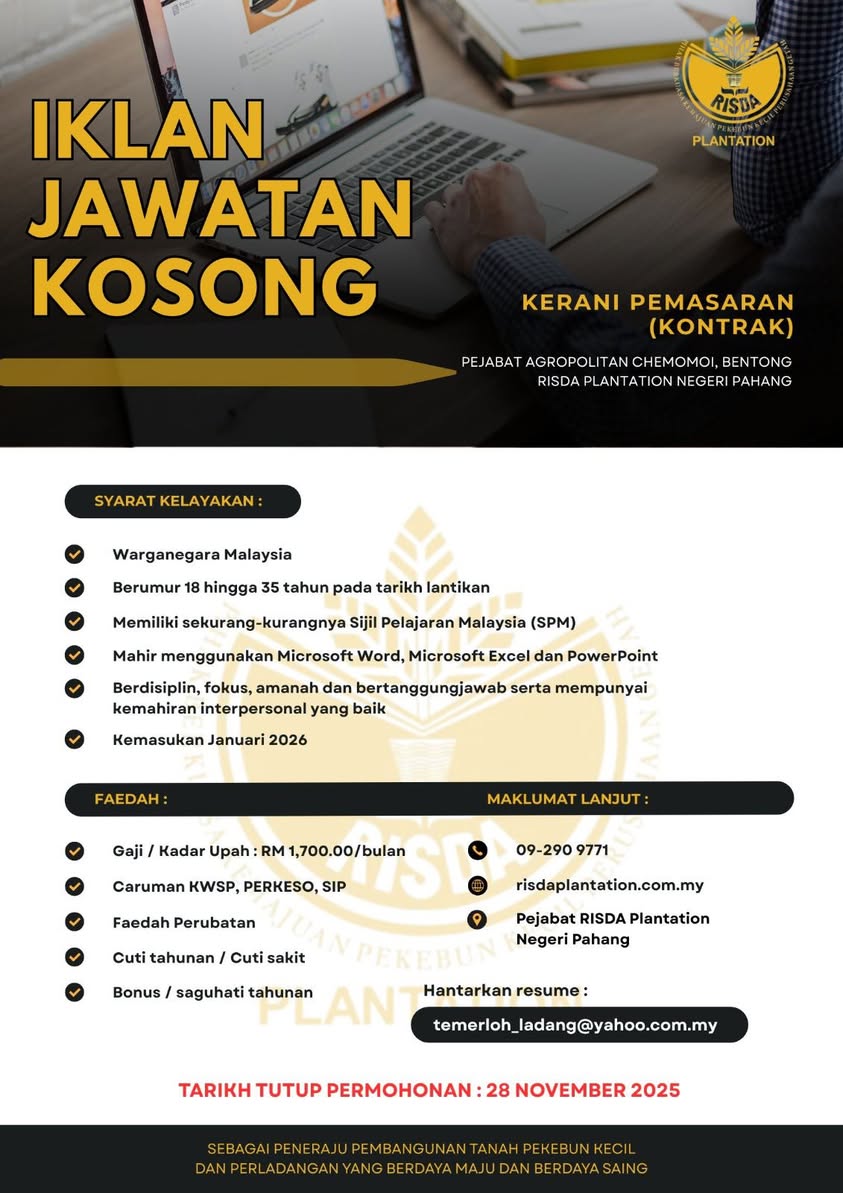 Iklan Kini Jawatan Kosong Risda Plantation Sdn Bhd Klik Iklan Jawatan Like serta Ikut Facebook Kami, follow Chanel WhatsApp Jawatan Kosong & Telegram Portal SPA9 untuk capaian pantas kekosongan jawatan daripada kami sekarang.