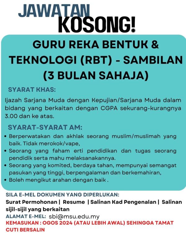 Iklan Kini Jawatan Kosong Sekolah Menengah Bina Insan Yayasan MSU (SBI YMSU)