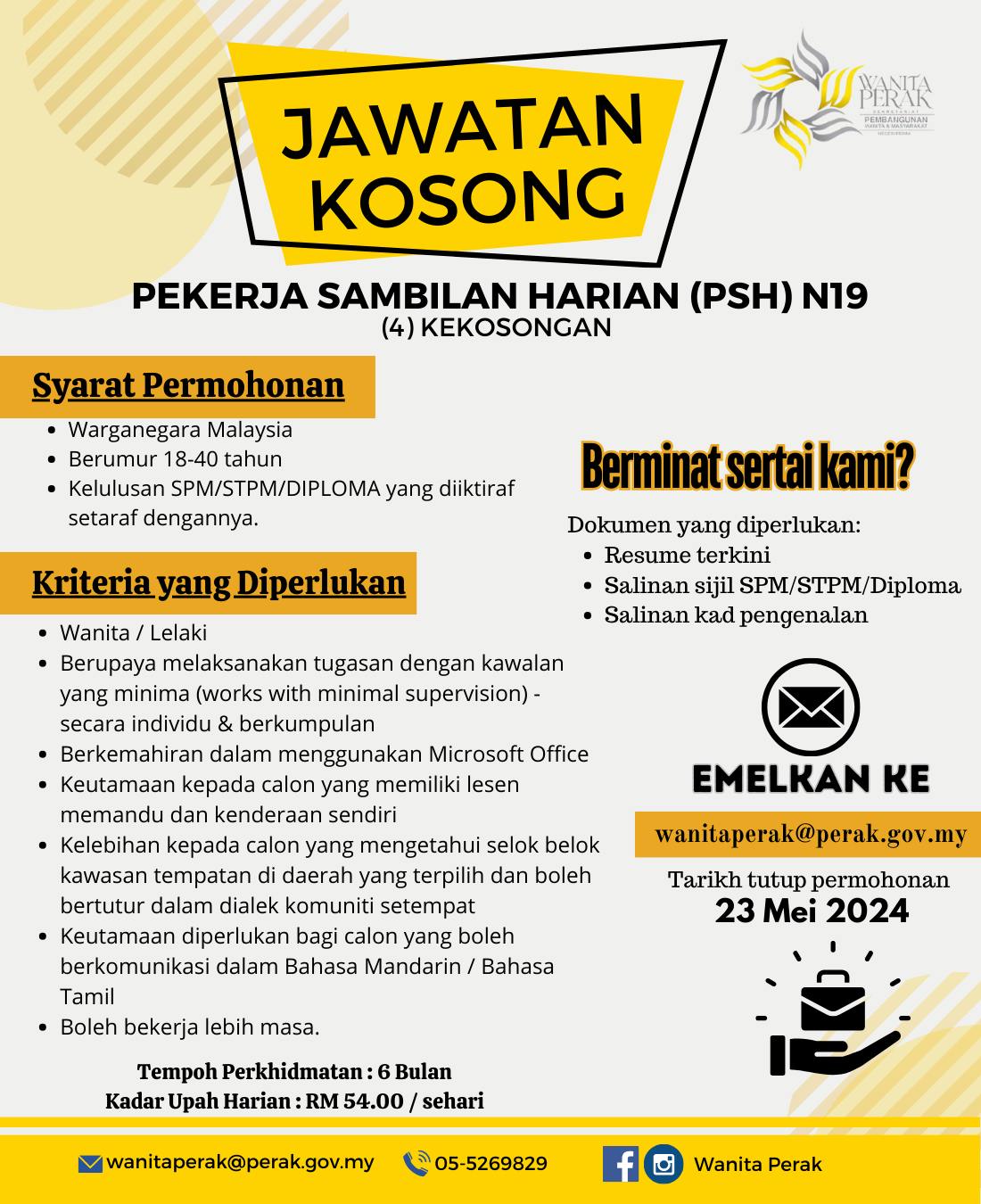 Iklan Kini Jawatan Kosong Sekretariat Pembangunan Wanita & Masyarakat Negeri Perak Like serta Ikut Facebook Kami, follow Chanel WhatsApp Jawatan Kosong & Telegram Portal SPA9 untuk capaian pantas kekosongan jawatan daripada kami sekarang.