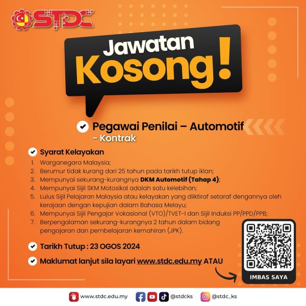 Iklan Kini Jawatan Kosong Selangor Technical Skills Development Centre Like serta Ikut Facebook Kami, follow Chanel WhatsApp Jawatan Kosong & Telegram Portal SPA9 untuk capaian pantas kekosongan jawatan daripada kami sekarang. Klik Jawatan Disini
