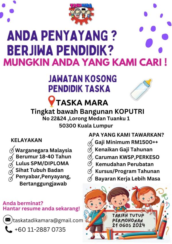 Iklan Kini Jawatan Kosong Taska MARA Like serta Ikut Facebook Kami, follow Chanel WhatsApp Jawatan Kosong & Telegram Portal SPA9 untuk capaian pantas kekosongan jawatan daripada kami sekarang. Klik Jawatan Disini