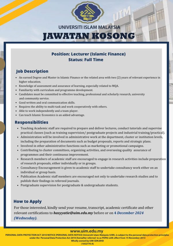 Iklan Kini Jawatan Kosong Terbaru di Universiti Islam Malaysia (UIM) Like serta Ikut Facebook Kami, follow Chanel WhatsApp Jawatan Kosong & Telegram Portal SPA9 untuk capaian pantas kekosongan jawatan daripada kami sekarang. Klik Jawatan Disini