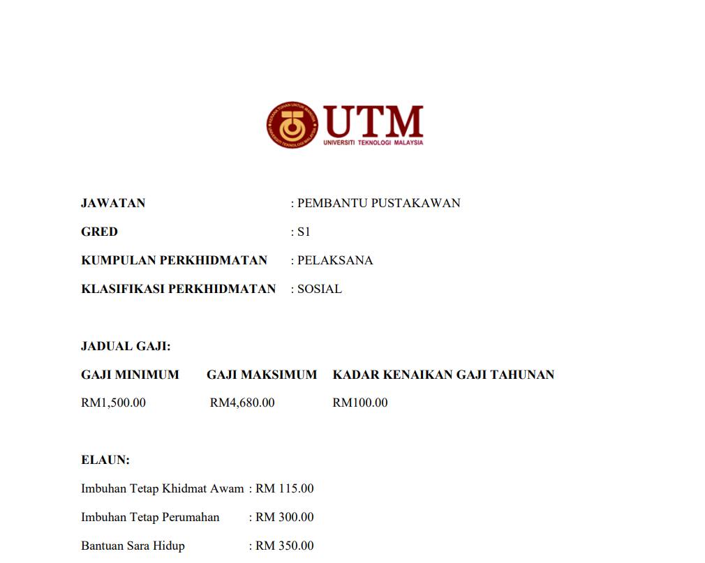 Iklan Kini Jawatan Kosong Terbaru di Universiti Teknologi Malaysia (UTM) Like serta Ikut Facebook Kami, follow Chanel WhatsApp Jawatan Kosong & Telegram Portal SPA9 untuk capaian pantas kekosongan jawatan daripada kami sekarang. Klik Jawatan Disini