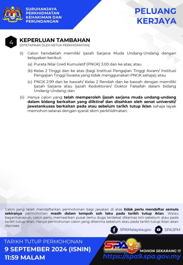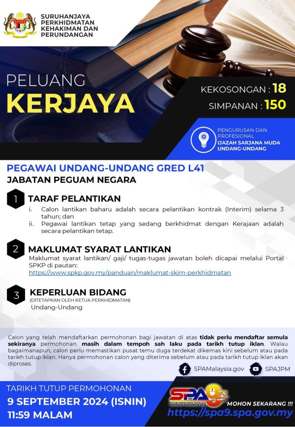 Iklan Kini Jawatan Kosong Terbaru Jabatan Peguam Negara Like serta Ikut Facebook Kami, follow Chanel WhatsApp Jawatan Kosong & Telegram Portal SPA9 untuk capaian pantas kekosongan jawatan daripada kami sekarang. Klik Jawatan Disini