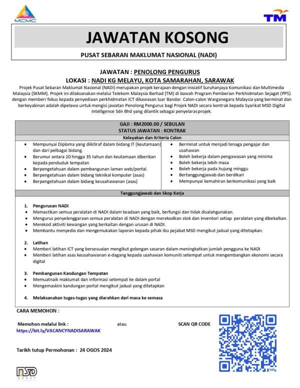 Iklan Kini Jawatan Kosong Terbaru Pusat Sebaran Maklumat Nasional Like serta Ikut Facebook Kami, follow Chanel WhatsApp Jawatan Kosong & Telegram Portal SPA9 untuk capaian pantas kekosongan jawatan daripada kami sekarang. Klik Jawatan Disini
