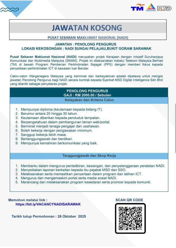 Iklan Kini Jawatan Kosong Terbaru Pusat Sebaran Maklumat Nasional Like serta Ikut Facebook Kami, follow Chanel WhatsApp Jawatan Kosong & Telegram Portal SPA9 untuk capaian pantas kekosongan jawatan daripada kami sekarang.