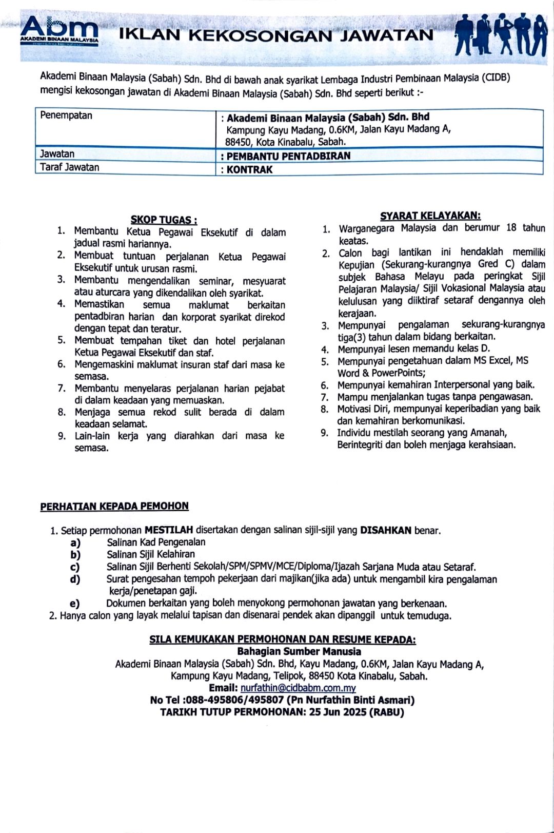 Iklan KIni Jawatan Kosong Terkini Akademi Binaan Malaysia Like serta Ikut Facebook Kami, follow Chanel WhatsApp Jawatan Kosong & Telegram Portal SPA9 untuk capaian pantas kekosongan jawatan daripada kami sekarang. Klik Jawatan Disini