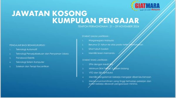 Iklan Kini Jawatan Kosong Terkini GIATMARA Like serta Ikut Facebook Kami, follow Chanel WhatsApp Jawatan Kosong & Telegram Portal SPA9 untuk capaian pantas kekosongan jawatan daripada kami sekarang. Klik Iklan Jawatan