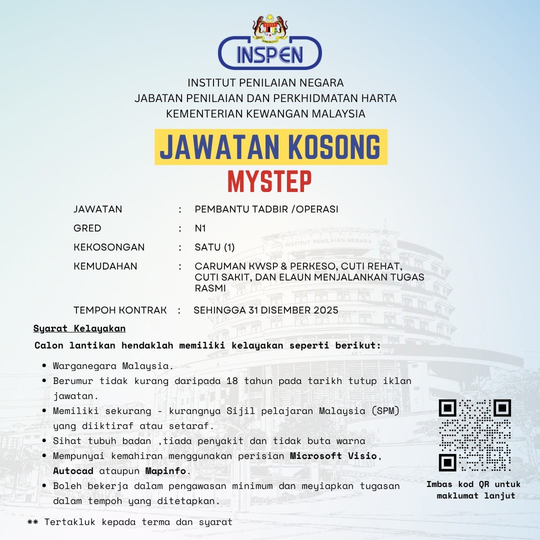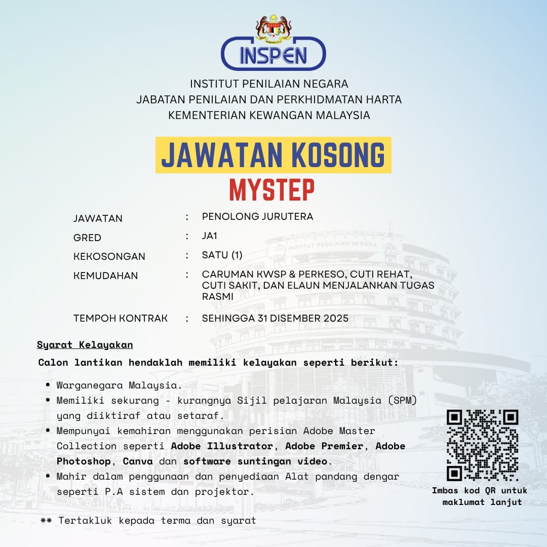 Iklan Kini Jawatan Kosong Terkini Institut Penilaian Negara (INSPEN) Like serta Ikut Facebook Kami, follow Chanel WhatsApp Jawatan Kosong & Telegram Portal SPA9 untuk capaian pantas kekosongan jawatan daripada kami sekarang. Klik Jawatan Disini
