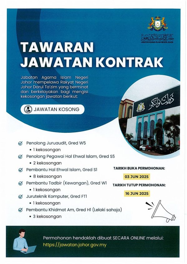 Iklan Kini Jawatan Kosong Terkini Jabatan Agama Islam Negeri Johor Like serta Ikut Facebook Kami, follow Chanel WhatsApp Jawatan Kosong & Telegram Portal SPA9 untuk capaian pantas kekosongan jawatan daripada kami sekarang.