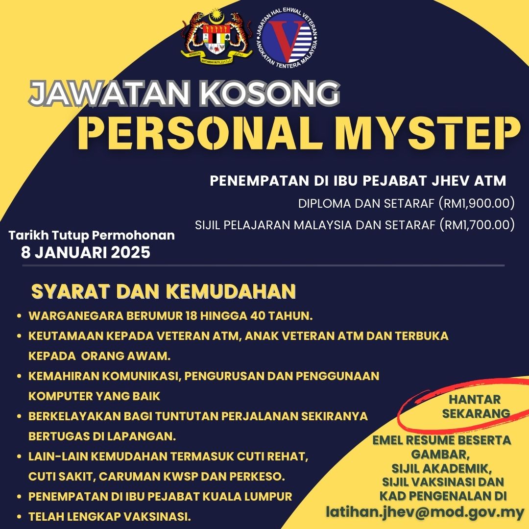 Iklan Kini Jawatan Kosong Terkini Jabatan Hal Ehwal Veteran ATM Like serta Ikut Facebook Kami, follow Chanel WhatsApp Jawatan Kosong & Telegram Portal SPA9 untuk capaian pantas kekosongan jawatan daripada kami sekarang. Klik Iklan Jawatan