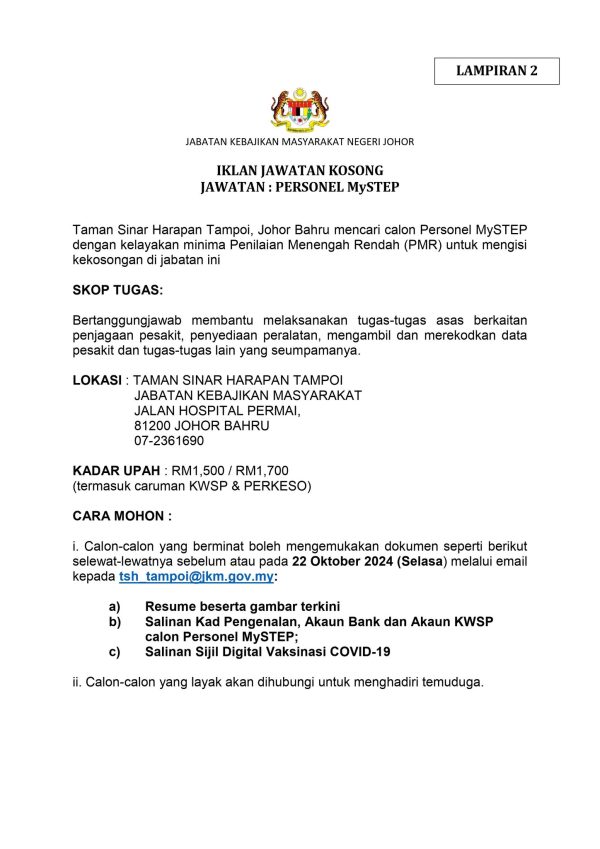 Iklan Kini Jawatan Kosong Terkini Jabatan Kebajikan Masyarakat Like serta Ikut Facebook Kami, follow Chanel WhatsApp Jawatan Kosong & Telegram Portal SPA9 untuk capaian pantas kekosongan jawatan daripada kami sekarang.