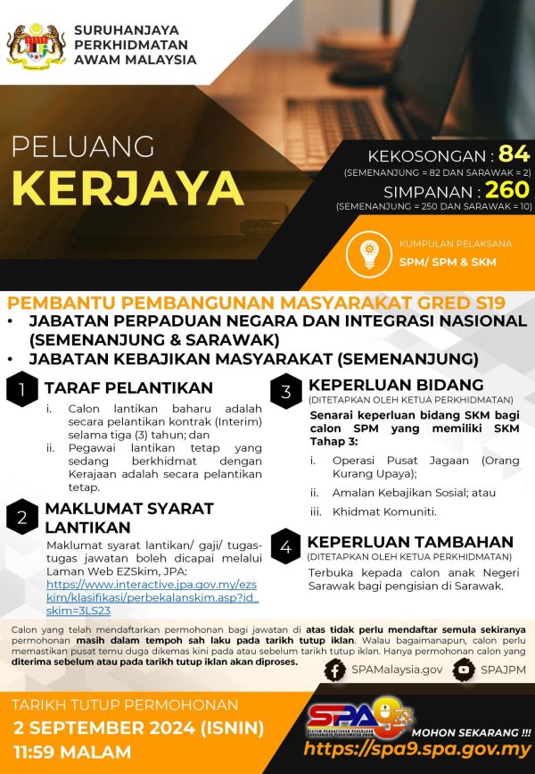 Iklan Kini Jawatan Kosong Jabatan Kebajikan Masyarakat (JKM) Klik Jawatan Disini Like serta Ikut Facebook Kami, follow Chanel WhatsApp Jawatan Kosong & Telegram Portal SPA9 untuk capaian pantas kekosongan jawatan daripada kami sekarang.
