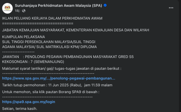 Iklan Kini Jawatan Kosong Terkini Jabatan Kemajuan Masyarakat (KEMAS) Like serta Ikut Facebook Kami, follow Chanel WhatsApp Jawatan Kosong & Telegram Portal SPA9 untuk capaian pantas kekosongan jawatan daripada kami sekarang. Klik Jawatan Disini