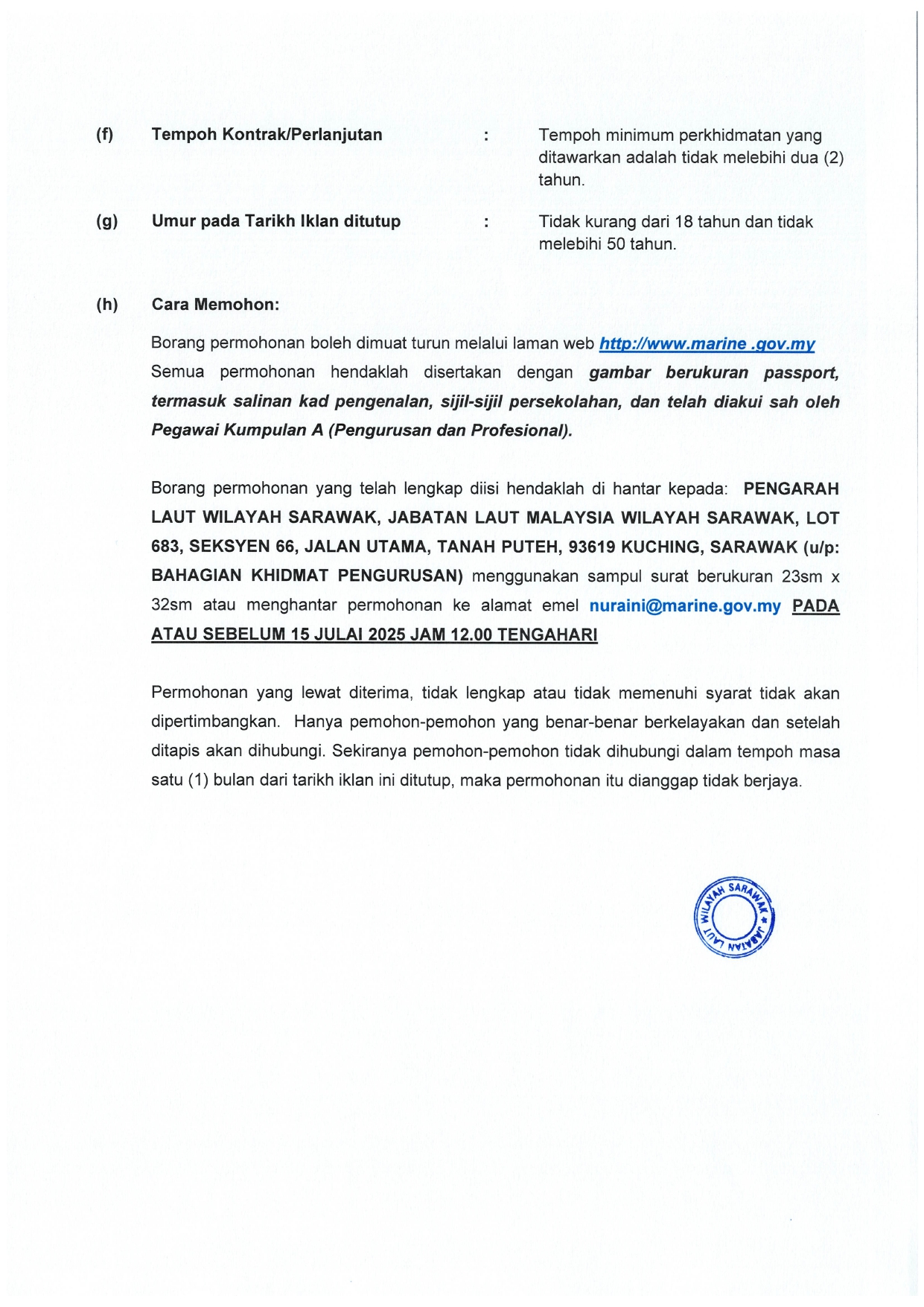 Iklan Kini Jawatan Kosong Terkini Jabatan Laut Malaysia Like serta Ikut Facebook Kami, follow Chanel WhatsApp Jawatan Kosong & Telegram Portal SPA9 untuk capaian pantas kekosongan jawatan daripada kami sekarang. Klik Jawatan Disini