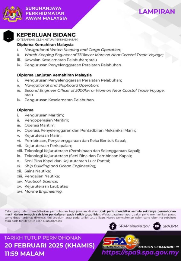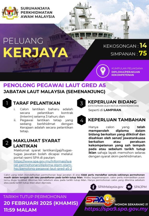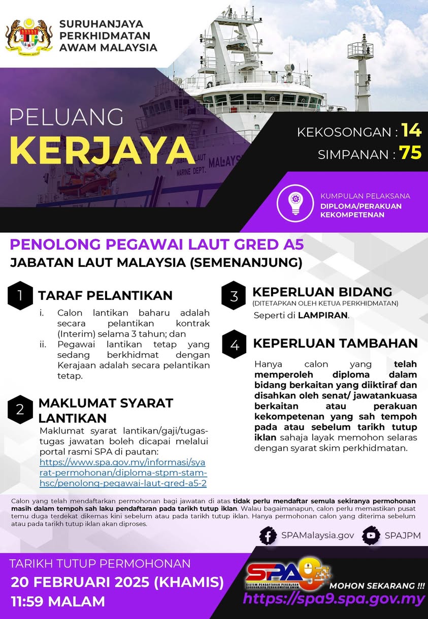 Iklan Kini Jawatan Kosong Terkini Jabatan Laut Malaysia Like serta Ikut Facebook Kami, follow Chanel WhatsApp Jawatan Kosong & Telegram Portal SPA9 untuk capaian pantas kekosongan jawatan daripada kami sekarang. Klik Jawatan Disini