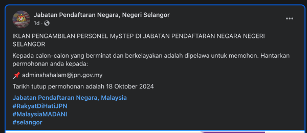 Iklan Kini Jawatan Kosong Terkini Jabatan Pendaftaran Negara