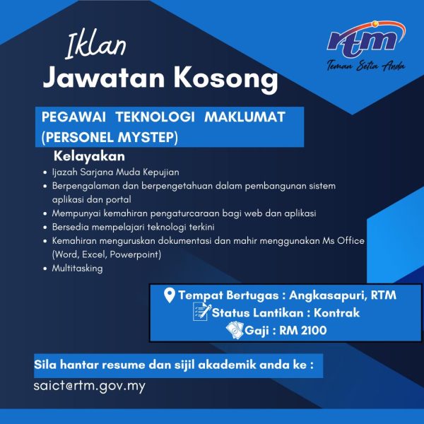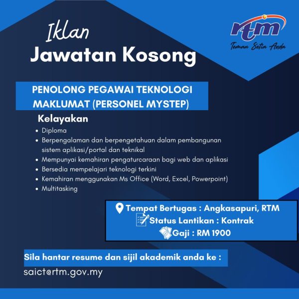 Iklan kini Jawatan Kosong Terkini Jabatan Penyiaran Malaysia (RTM) Like serta Ikut Facebook Kami, follow Chanel WhatsApp Jawatan Kosong & Telegram Portal SPA9 untuk capaian pantas kekosongan jawatan daripada kami sekarang.