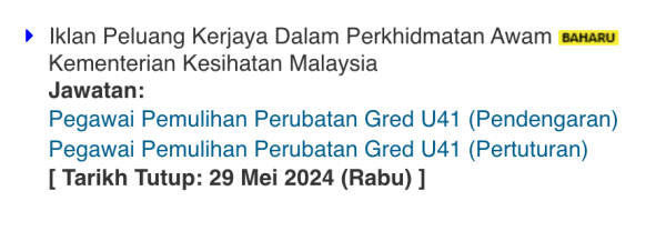 Iklan Kini Jawatan Kosong Terkini Kementerian Kesihatan Malaysia Like serta Ikut Facebook Kami, follow Chanel WhatsApp Jawatan Kosong & Telegram Portal SPA9 untuk capaian pantas kekosongan jawatan daripada kami sekarang. Klik Jawatan Disini