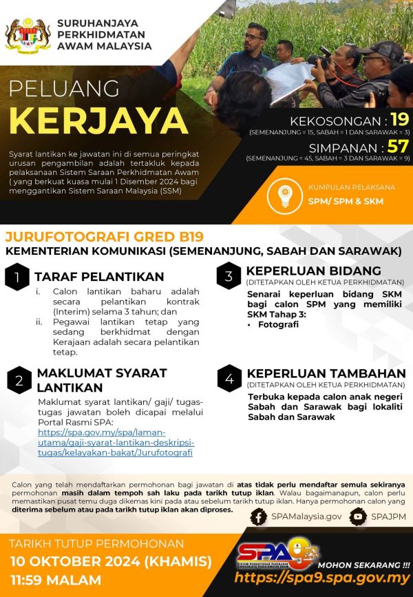 Iklan Kini Jawatan Kosong Terkini Kementerian Komunikasi Like serta Ikut Facebook Kami, follow Chanel WhatsApp Jawatan Kosong & Telegram Portal SPA9 untuk capaian pantas kekosongan jawatan daripada kami sekarang. Klik Link Jawatan Disini