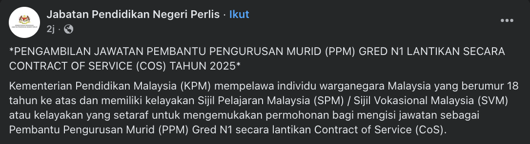 Iklan Kini Jawatan Kosong Terkini Kementerian Pendidikan Malaysia (KPM) Like serta Ikut Facebook Kami, follow Chanel WhatsApp Jawatan Kosong & Telegram Portal SPA9 untuk capaian pantas kekosongan jawatan daripada kami sekarang. Klik Jawatan Disini