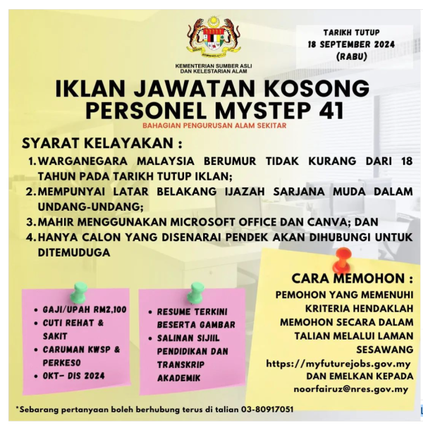 Iklan Kini Jawatan Kosong Terkini Kementerian Sumber Asli dan Kelestarian Alam Like serta Ikut Facebook Kami, follow Chanel WhatsApp Jawatan Kosong & Telegram Portal SPA9 untuk capaian pantas kekosongan jawatan daripada kami sekarang.