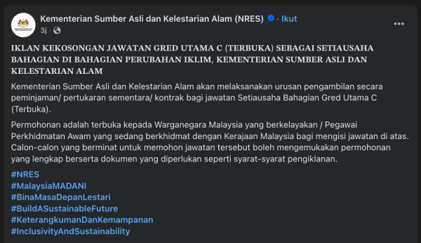 Iklan Kini Jawatan Kosong Terkini Kementerian Sumber Asli dan Kelestarian Alam Like serta Ikut Facebook Kami, follow Chanel WhatsApp Jawatan Kosong & Telegram Portal SPA9 untuk capaian pantas kekosongan jawatan daripada kami sekarang. Klik Iklan Jawatan