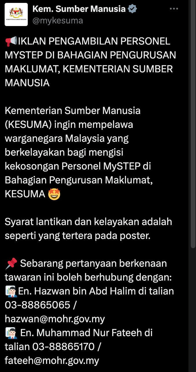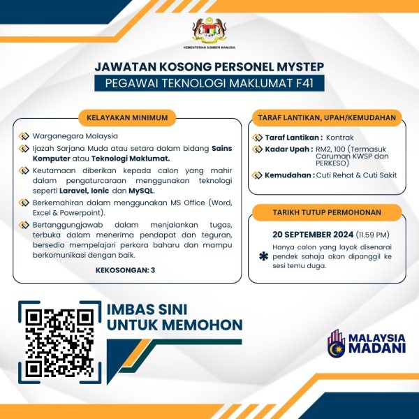 Iklan Kini Jawatan Kosong Terkini Kementerian Sumber Manusia Like serta Ikut Facebook Kami, follow Chanel WhatsApp Jawatan Kosong & Telegram Portal SPA9 untuk capaian pantas kekosongan jawatan daripada kami sekarang.