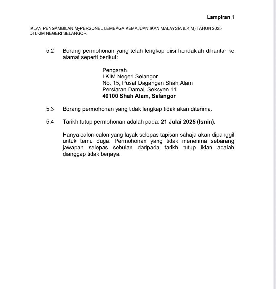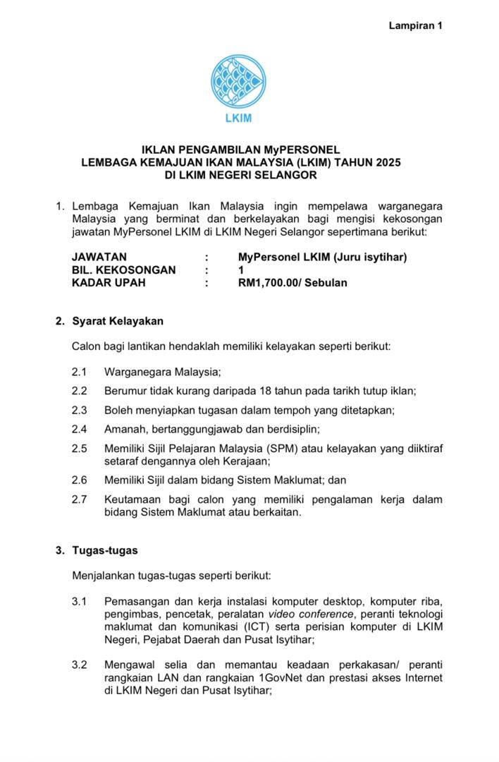 Iklan Kini Jawatan Kosong Terkini Lembaga Kemajuan Ikan Malaysia (LKIM) Klik Jawatan Disini Like serta Ikut Facebook Kami, follow Chanel WhatsApp Jawatan Kosong & Telegram Portal SPA9 untuk capaian pantas kekosongan jawatan daripada kami sekarang.