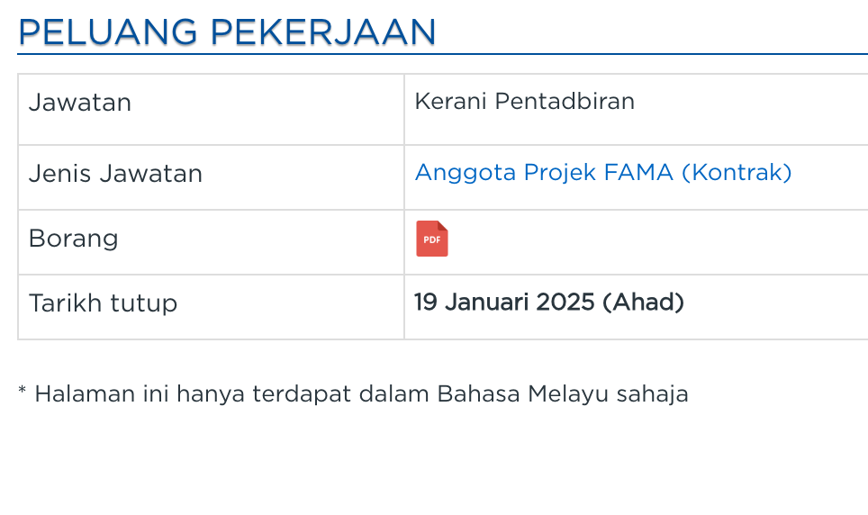 Iklan Kini Jawatan Kosong Terkini Lembaga Pemasaran Pertanian Persekutuan (FAMA) Like serta Ikut Facebook Kami, follow Chanel WhatsApp Jawatan Kosong & Telegram Portal SPA9 untuk capaian pantas kekosongan jawatan daripada kami sekarang. Klik Iklan Jawatan