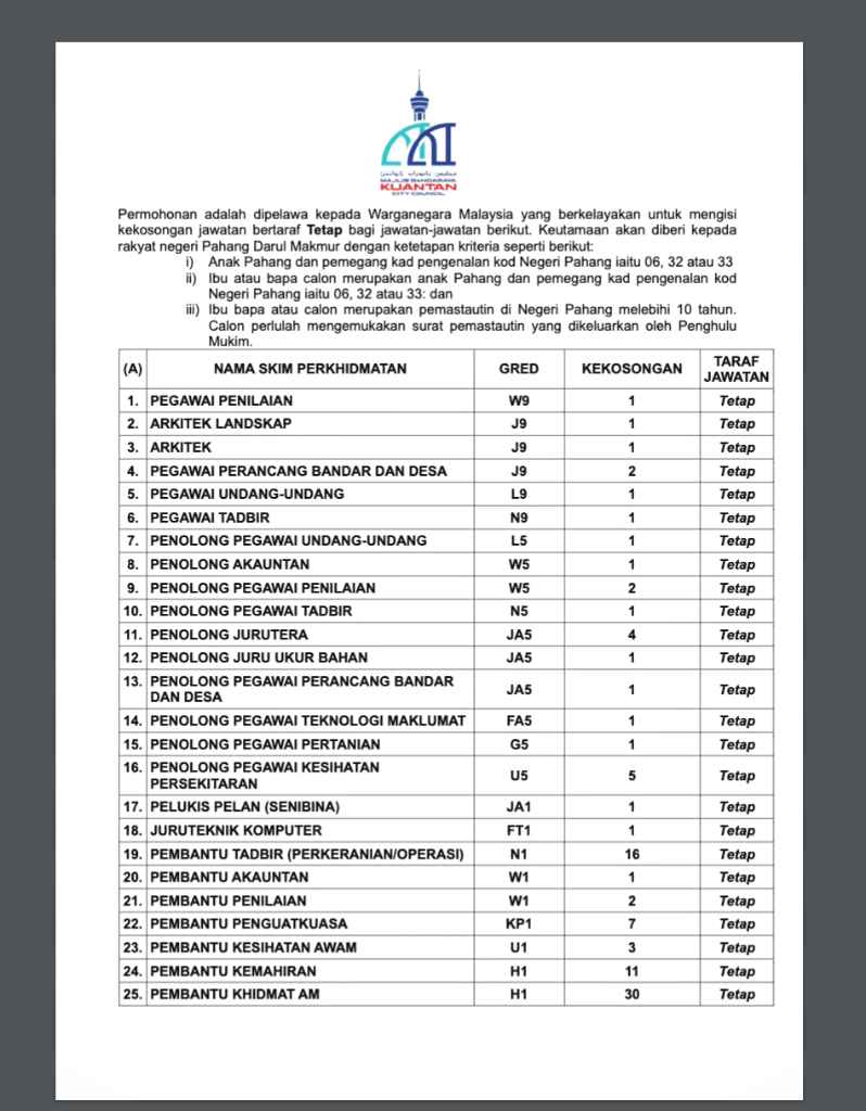 Iklan Kini Jawatan Kosong Terkini Majlis Bandaraya Kuantan Like serta Ikut Facebook Kami, follow Chanel WhatsApp Jawatan Kosong & Telegram Portal SPA9 untuk capaian pantas kekosongan jawatan daripada kami sekarang. Klik Iklan Disini