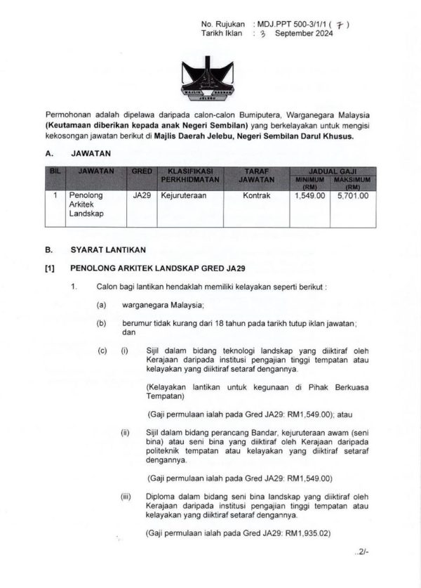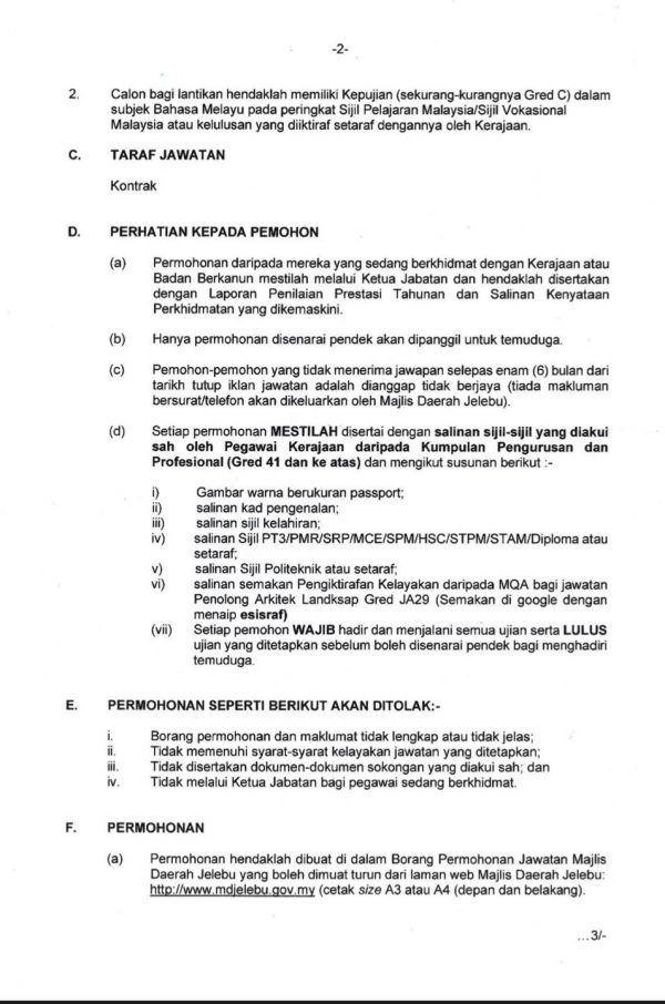 Iklan Kini Jawatan Kosong Terkini Majlis Daerah Jelebu Like serta Ikut Facebook Kami, follow Chanel WhatsApp Jawatan Kosong & Telegram Portal SPA9 untuk capaian pantas kekosongan jawatan daripada kami sekarang. Klik Jawatan Disini