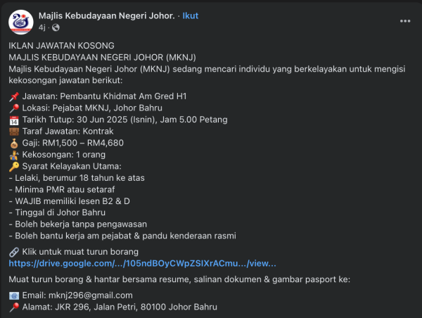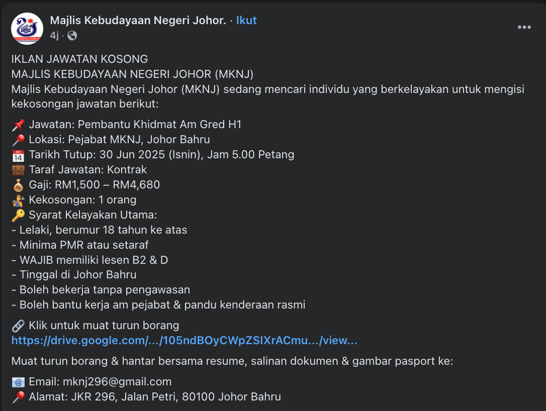 Iklan Kini Jawatan Kosong Terkini Majlis Kebudayaan Negeri Johor Klik Jawatan Disini Like serta Ikut Facebook Kami, follow Chanel WhatsApp Jawatan Kosong & Telegram Portal SPA9 untuk capaian pantas kekosongan jawatan daripada kami sekarang.