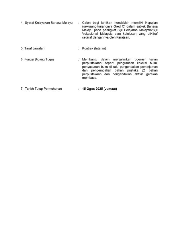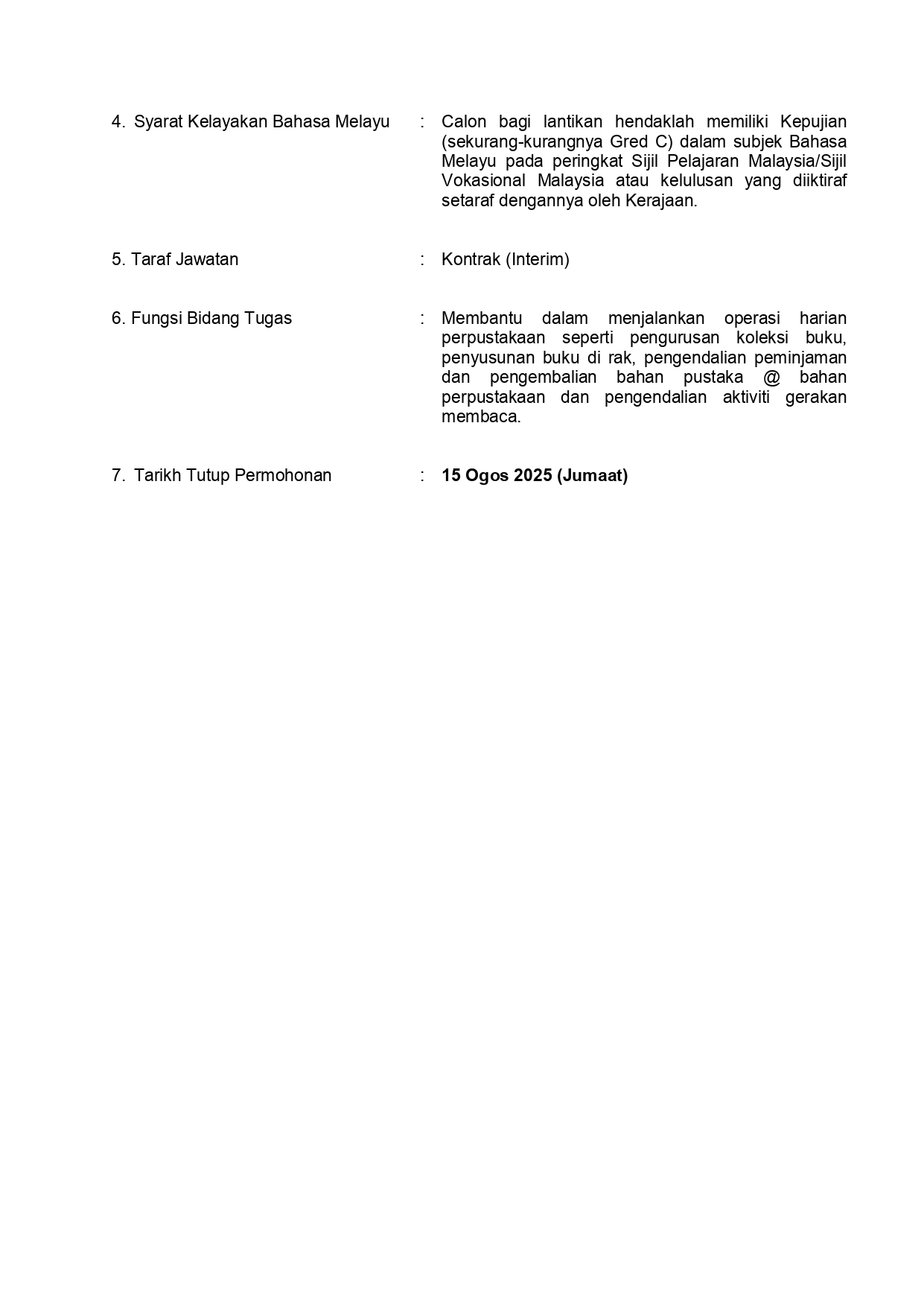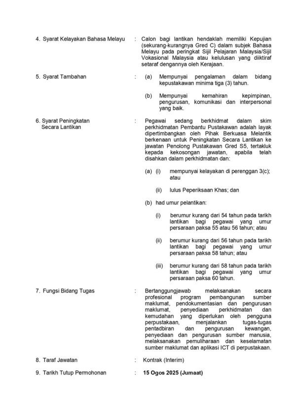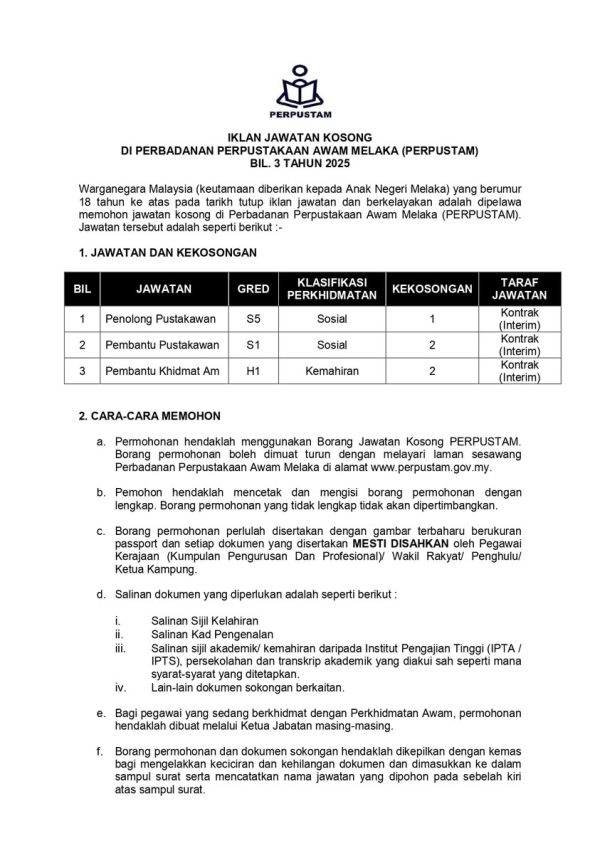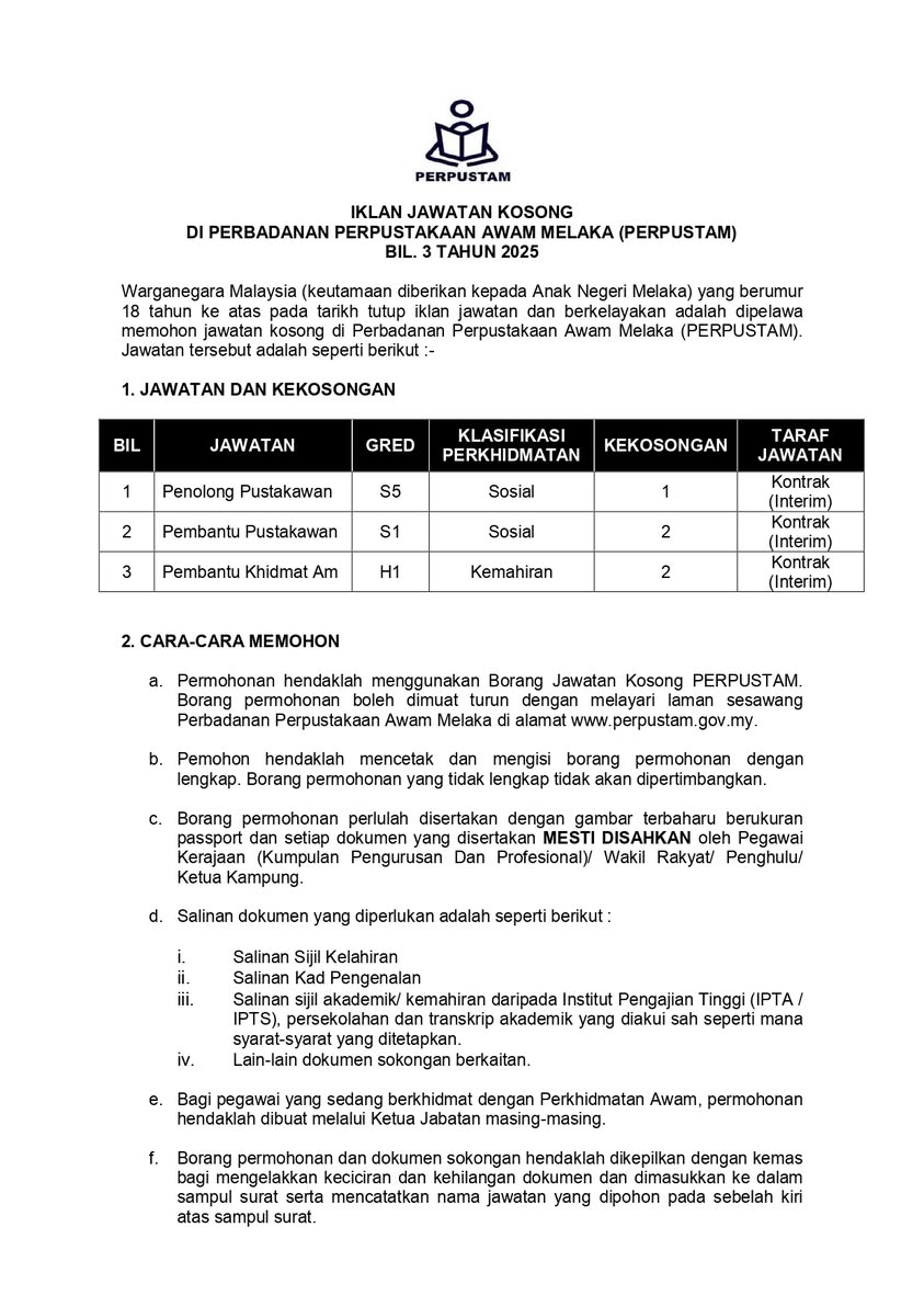 Iklan Kini Jawatan Kosong Terkini Perbadanan Perpustakaan Awam Melaka Klik Jawatan Disini Like serta Ikut Facebook Kami, follow Chanel WhatsApp Jawatan Kosong & Telegram Portal SPA9 untuk capaian pantas kekosongan jawatan daripada kami sekarang.