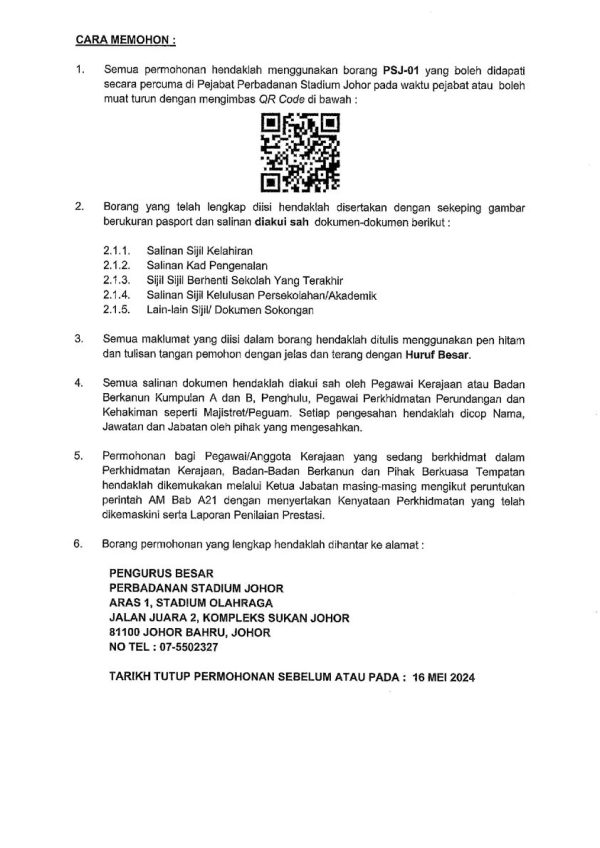 Iklan Kini Jawatan Kosong Terkini Perbadanan Stadium Johor (MSNJ) Like serta Ikut Facebook Kami, follow Chanel WhatsApp Jawatan Kosong & Telegram Portal SPA9 untuk capaian pantas kekosongan jawatan daripada kami sekarang.