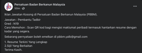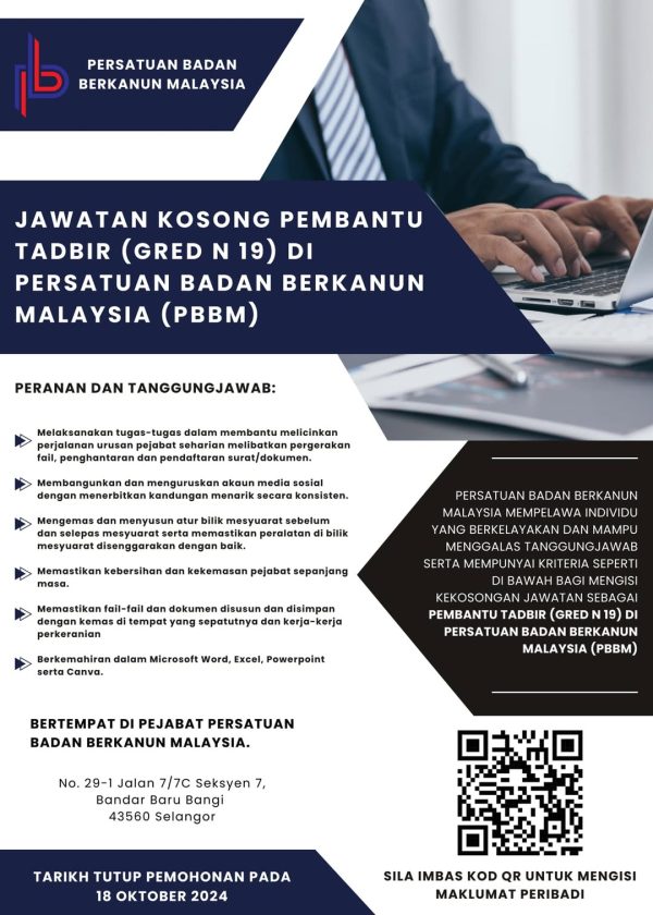 Iklan Kini Jawatan Kosong Terkini Persatuan Badan Berkanun Malaysia ~ Pembantu Tadbir Like serta Ikut Facebook Kami, follow Chanel WhatsApp Jawatan Kosong & Telegram Portal SPA9 untuk capaian pantas kekosongan jawatan daripada kami sekarang.