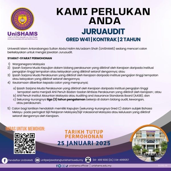 Iklan Kini Jawatan Kosong Terkini Universiti Islam Antarabangsa Sultan Abdul Halim Mu’adzam Shah (UniSHAMS)