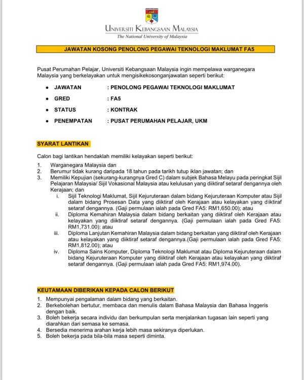 Iklan Kini Jawatan Kosong Terkini Universiti Kebangsaan Malaysia (UKM) Klik Jawatan Disini Like serta Ikut Facebook Kami, follow Chanel WhatsApp Jawatan Kosong & Telegram Portal SPA9 untuk capaian pantas kekosongan jawatan daripada kami sekarang.