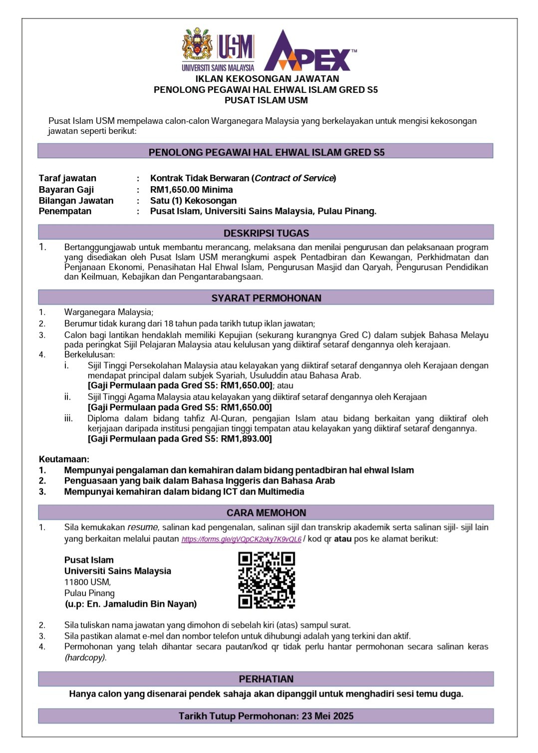 Iklan Kini Jawatan Kosong Terkini Universiti Sains Malaysia (USM) Like serta Ikut Facebook Kami, follow Chanel WhatsApp Jawatan Kosong & Telegram Portal SPA9 untuk capaian pantas kekosongan jawatan daripada kami sekarang. Klik Jawatan Disini