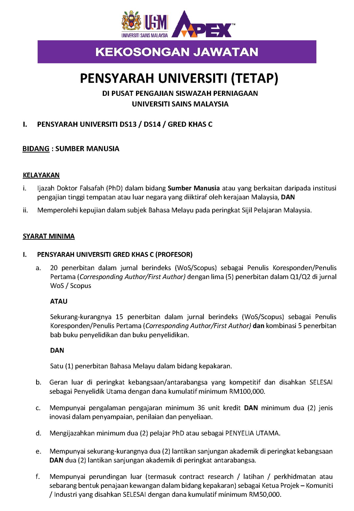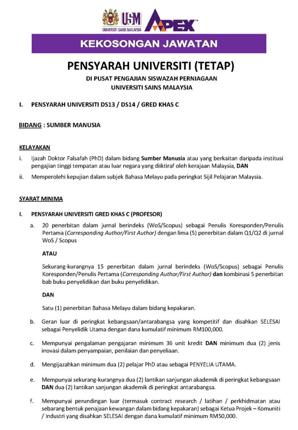 Iklan Kini Jawatan Kosong Terkini Universiti Sains Malaysia (USM) Like serta Ikut Facebook Kami, follow Chanel WhatsApp Jawatan Kosong & Telegram Portal SPA9 untuk capaian pantas kekosongan jawatan daripada kami sekarang. Klik Jawatan Disini