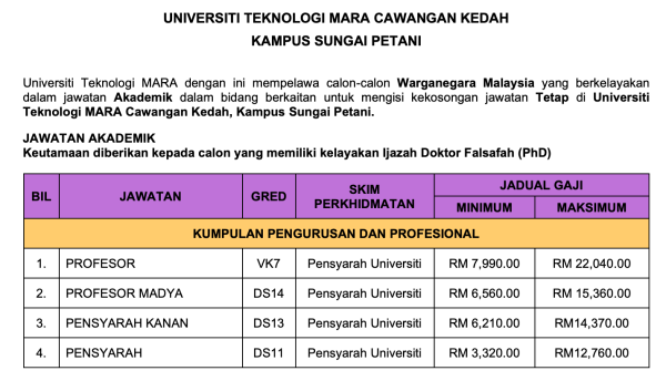 Iklan Kini Jawatan Kosong Terkini Universiti Teknologi Mara (UiTM) Cawangan Kedah Like serta Ikut Facebook Kami, follow Chanel WhatsApp Jawatan Kosong & Telegram Portal SPA9 untuk capaian pantas kekosongan jawatan daripada kami sekarang. Klik Jawatan Disini