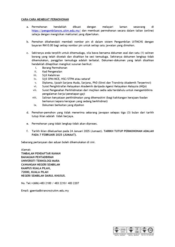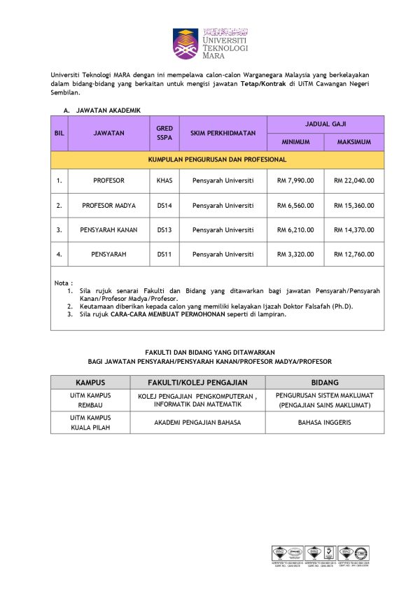 Iklan Kini Jawatan Kosong Terkini Universiti Teknologi MARA (UiTM) Klik Iklan Jawatan Like serta Ikut Facebook Kami, follow Chanel WhatsApp Jawatan Kosong & Telegram Portal SPA9 untuk capaian pantas kekosongan jawatan daripada kami sekarang.