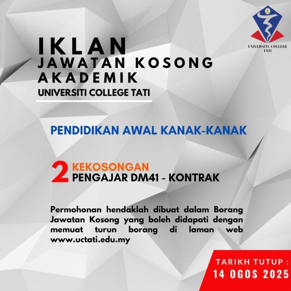 Iklan Kini Jawatan Kosong Terkini University College TATI Like serta Ikut Facebook Kami, follow Chanel WhatsApp Jawatan Kosong & Telegram Portal SPA9 untuk capaian pantas kekosongan jawatan daripada kami sekarang. Klik Jawatan Disini